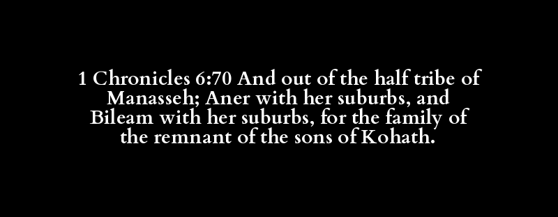1 Chronicles 6:70 And out of the half tribe of Manasseh; Aner with her suburbs, and Bileam with her suburbs, for the family of the remnant of the sons of Kohath.