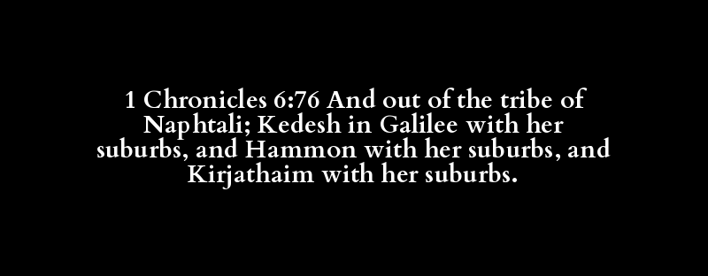 1 Chronicles 6:76 And out of the tribe of Naphtali; Kedesh in Galilee with her suburbs, and Hammon with her suburbs, and Kirjathaim with her suburbs.