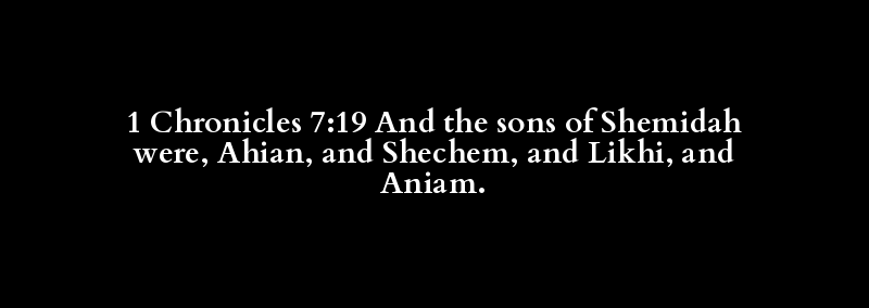 1 Chronicles 7:19 And the sons of Shemidah were, Ahian, and Shechem, and Likhi, and Aniam.