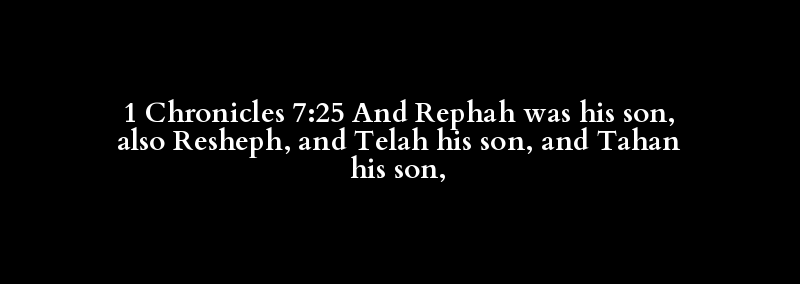 1 Chronicles 7:25 And Rephah was his son, also Resheph, and Telah his son, and Tahan his son,