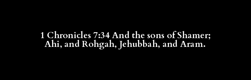 1 Chronicles 7:34 And the sons of Shamer; Ahi, and Rohgah, Jehubbah, and Aram.