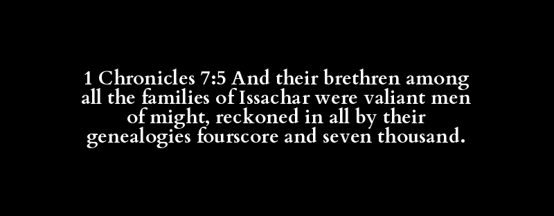 1 Chronicles 7:5 And their brethren among all the families of Issachar were valiant men of might, reckoned in all by their genealogies fourscore and seven thousand.