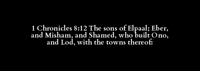 1 Chronicles 8:12 The sons of Elpaal; Eber, and Misham, and Shamed, who built Ono, and Lod, with the towns thereof: