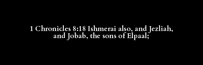 1 Chronicles 8:18 Ishmerai also, and Jezliah, and Jobab, the sons of Elpaal;