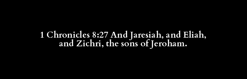 1 Chronicles 8:27 And Jaresiah, and Eliah, and Zichri, the sons of Jeroham.