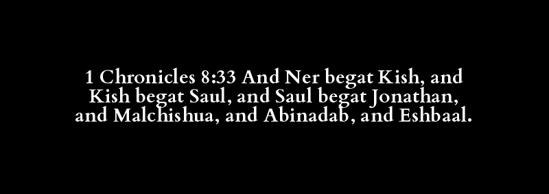 1 Chronicles 8:33 And Ner begat Kish, and Kish begat Saul, and Saul begat Jonathan, and Malchishua, and Abinadab, and Eshbaal.