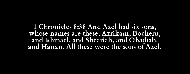 1 Chronicles 8:38 And Azel had six sons, whose names are these, Azrikam, Bocheru, and Ishmael, and Sheariah, and Obadiah, and Hanan. All these were the sons of Azel.