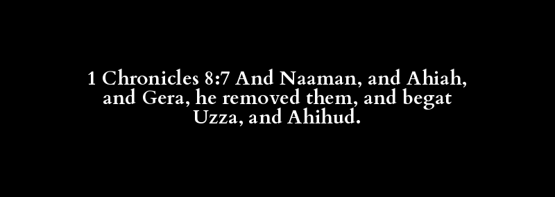 1 Chronicles 8:7 And Naaman, and Ahiah, and Gera, he removed them, and begat Uzza, and Ahihud.