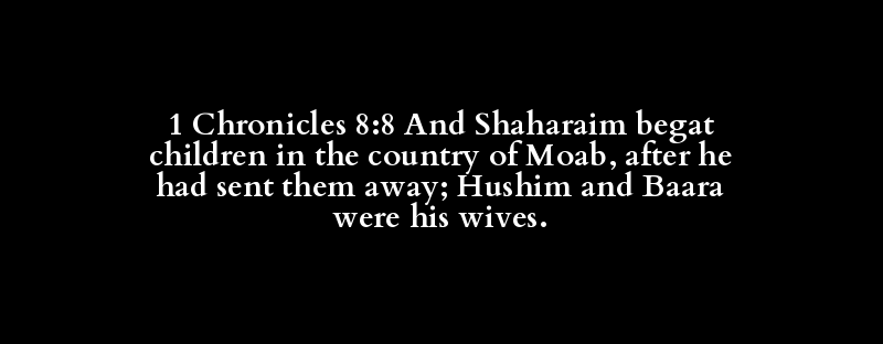 1 Chronicles 8:8 And Shaharaim begat children in the country of Moab, after he had sent them away; Hushim and Baara were his wives.