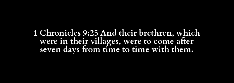 1 Chronicles 9:25 And their brethren, which were in their villages, were to come after seven days from time to time with them.