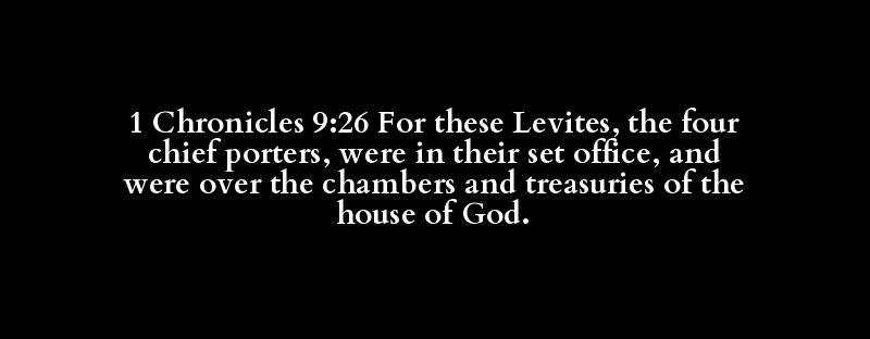 1 Chronicles 9:26 For these Levites, the four chief porters, were in their set office, and were over the chambers and treasuries of the house of God.