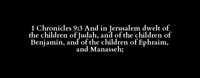 1 Chronicles 9:3 And in Jerusalem dwelt of the children of Judah, and of the children of Benjamin, and of the children of Ephraim, and Manasseh;