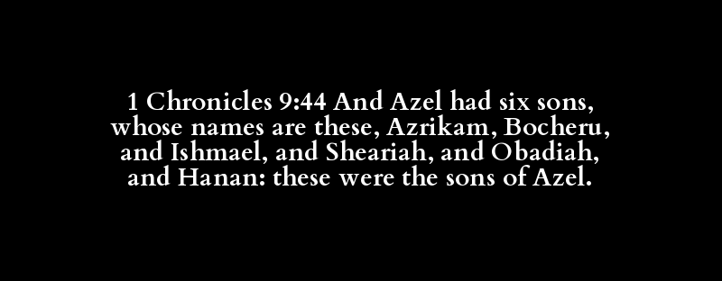 1 Chronicles 9:44 And Azel had six sons, whose names are these, Azrikam, Bocheru, and Ishmael, and Sheariah, and Obadiah, and Hanan: these were the sons of Azel.