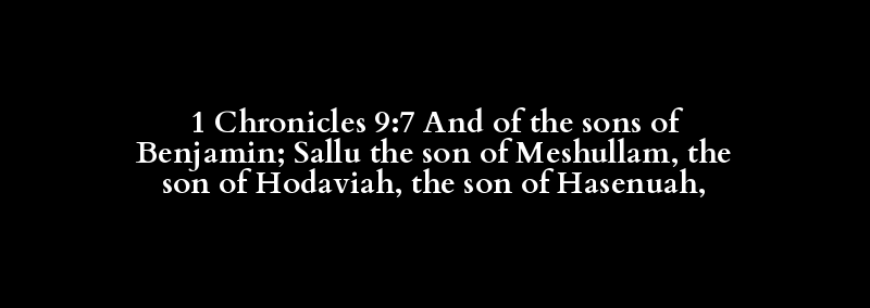 1 Chronicles 9:7 And of the sons of Benjamin; Sallu the son of Meshullam, the son of Hodaviah, the son of Hasenuah,