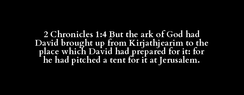 2 Chronicles 1:4 But the ark of God had David brought up from Kirjathjearim to the place which David had prepared for it: for he had pitched a tent for it at Jerusalem.