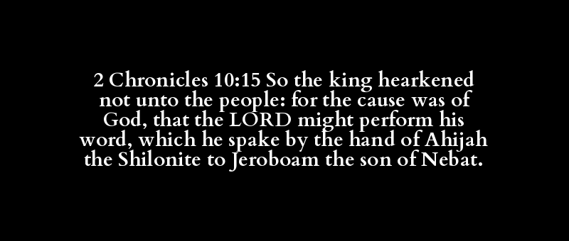2 Chronicles 10:15 So the king hearkened not unto the people: for the cause was of God, that the LORD might perform his word, which he spake by the hand of Ahijah the Shilonite to Jeroboam the son of Nebat.