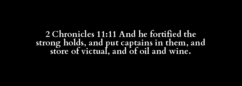 2 Chronicles 11:11 And he fortified the strong holds, and put captains in them, and store of victual, and of oil and wine.