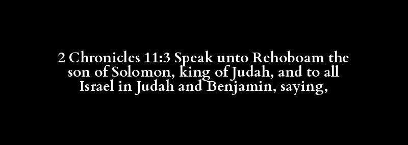 2 Chronicles 11:3 Speak unto Rehoboam the son of Solomon, king of Judah, and to all Israel in Judah and Benjamin, saying,