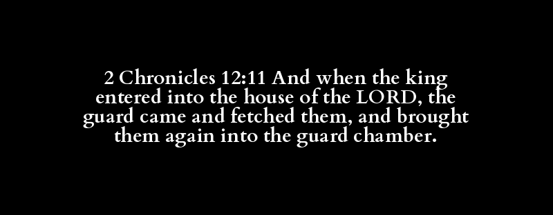 2 Chronicles 12:11 And when the king entered into the house of the LORD, the guard came and fetched them, and brought them again into the guard chamber.