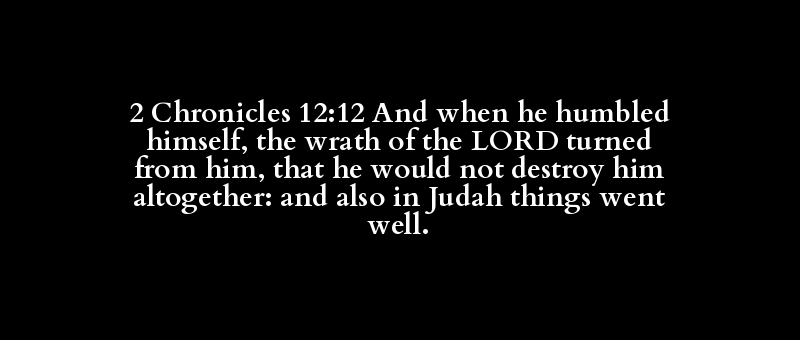 2 Chronicles 12:12 And when he humbled himself, the wrath of the LORD turned from him, that he would not destroy him altogether: and also in Judah things went well.