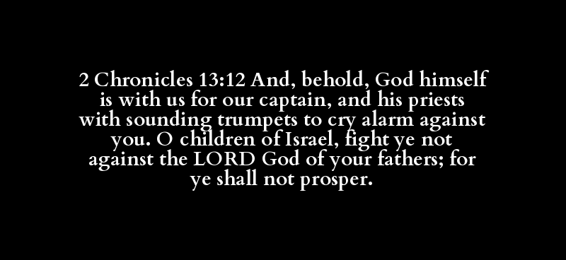 2 Chronicles 13:12 And, behold, God himself is with us for our captain, and his priests with sounding trumpets to cry alarm against you. O children of Israel, fight ye not against the LORD God of your fathers; for ye shall not prosper.