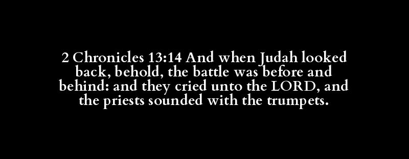 2 Chronicles 13:14 And when Judah looked back, behold, the battle was before and behind: and they cried unto the LORD, and the priests sounded with the trumpets.