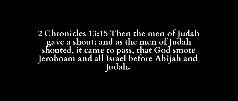 2 Chronicles 13:15 Then the men of Judah gave a shout: and as the men of Judah shouted, it came to pass, that God smote Jeroboam and all Israel before Abijah and Judah.