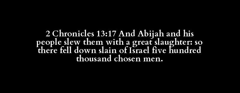 2 Chronicles 13:17 And Abijah and his people slew them with a great slaughter: so there fell down slain of Israel five hundred thousand chosen men.