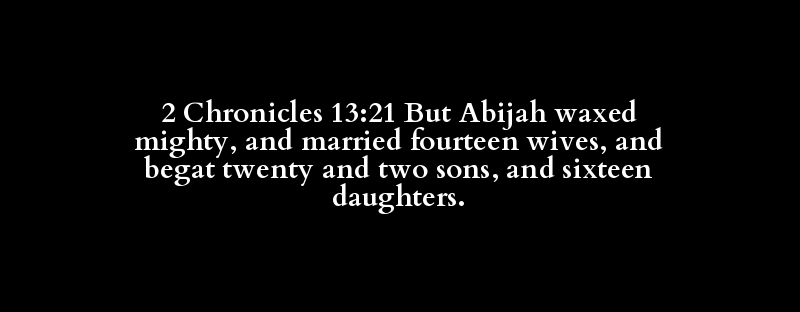2 Chronicles 13:21 But Abijah waxed mighty, and married fourteen wives, and begat twenty and two sons, and sixteen daughters.