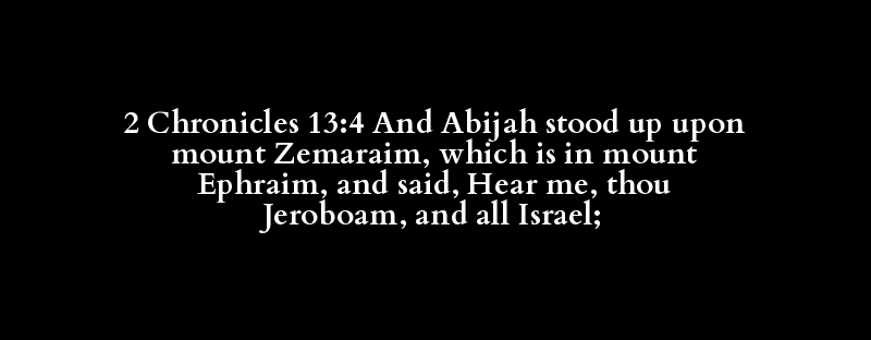 2 Chronicles 13:4 And Abijah stood up upon mount Zemaraim, which is in mount Ephraim, and said, Hear me, thou Jeroboam, and all Israel;