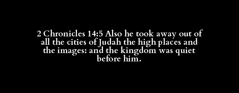 2 Chronicles 14:5 Also he took away out of all the cities of Judah the high places and the images: and the kingdom was quiet before him.