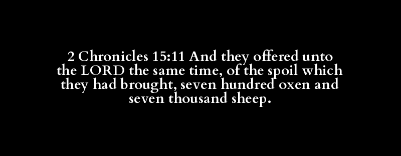 2 Chronicles 15:11 And they offered unto the LORD the same time, of the spoil which they had brought, seven hundred oxen and seven thousand sheep.