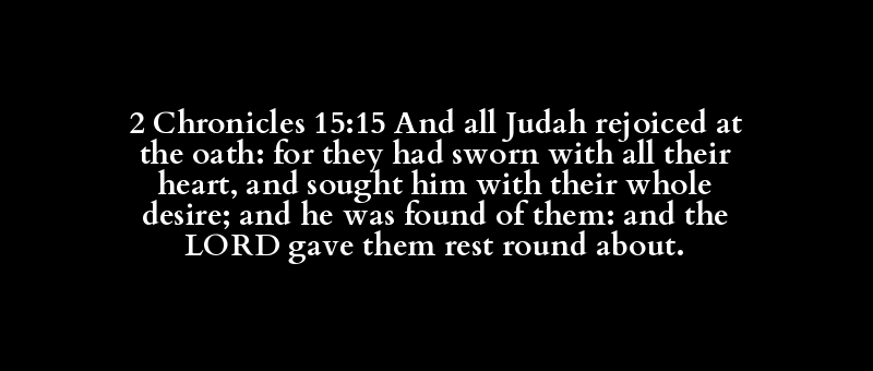 2 Chronicles 15:15 And all Judah rejoiced at the oath: for they had sworn with all their heart, and sought him with their whole desire; and he was found of them: and the LORD gave them rest round about.