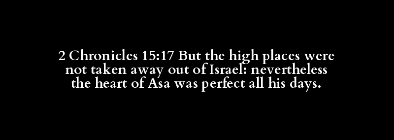 2 Chronicles 15:17 But the high places were not taken away out of Israel: nevertheless the heart of Asa was perfect all his days.