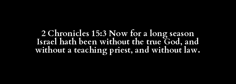 2 Chronicles 15:3 Now for a long season Israel hath been without the true God, and without a teaching priest, and without law.