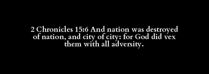 2 Chronicles 15:6 And nation was destroyed of nation, and city of city: for God did vex them with all adversity.