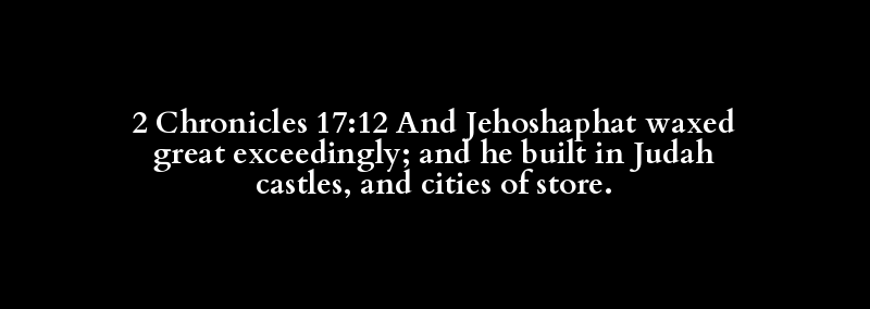 2 Chronicles 17:12 And Jehoshaphat waxed great exceedingly; and he built in Judah castles, and cities of store.