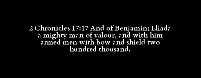 2 Chronicles 17:17 And of Benjamin; Eliada a mighty man of valour, and with him armed men with bow and shield two hundred thousand.