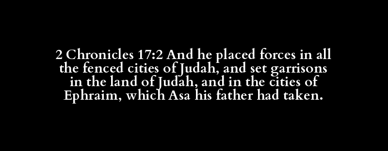 2 Chronicles 17:2 And he placed forces in all the fenced cities of Judah, and set garrisons in the land of Judah, and in the cities of Ephraim, which Asa his father had taken.