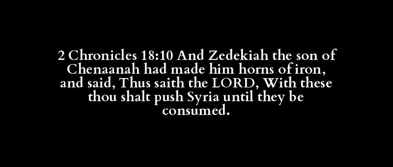 2 Chronicles 18:10 And Zedekiah the son of Chenaanah had made him horns of iron, and said, Thus saith the LORD, With these thou shalt push Syria until they be consumed.