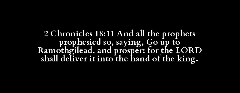 2 Chronicles 18:11 And all the prophets prophesied so, saying, Go up to Ramothgilead, and prosper: for the LORD shall deliver it into the hand of the king.