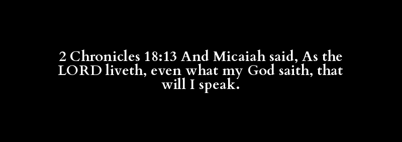 2 Chronicles 18:13 And Micaiah said, As the LORD liveth, even what my God saith, that will I speak.