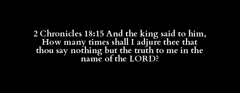 2 Chronicles 18:15 And the king said to him, How many times shall I adjure thee that thou say nothing but the truth to me in the name of the LORD?