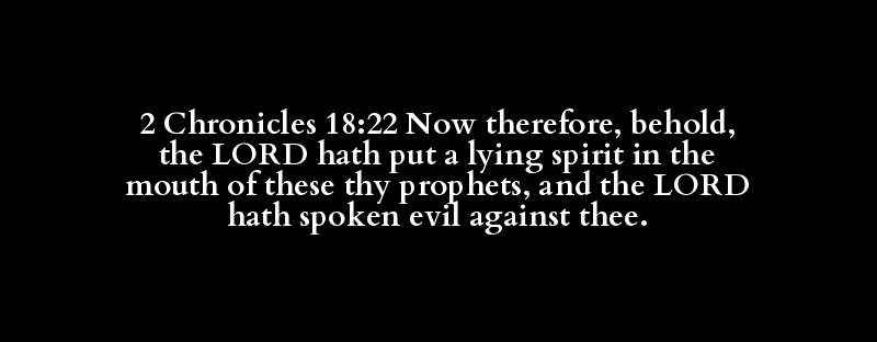 2 Chronicles 18:22 Now therefore, behold, the LORD hath put a lying spirit in the mouth of these thy prophets, and the LORD hath spoken evil against thee.