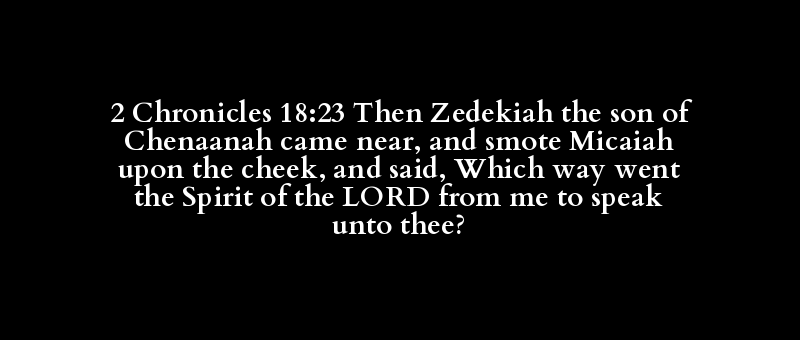 2 Chronicles 18:23 Then Zedekiah the son of Chenaanah came near, and smote Micaiah upon the cheek, and said, Which way went the Spirit of the LORD from me to speak unto thee?
