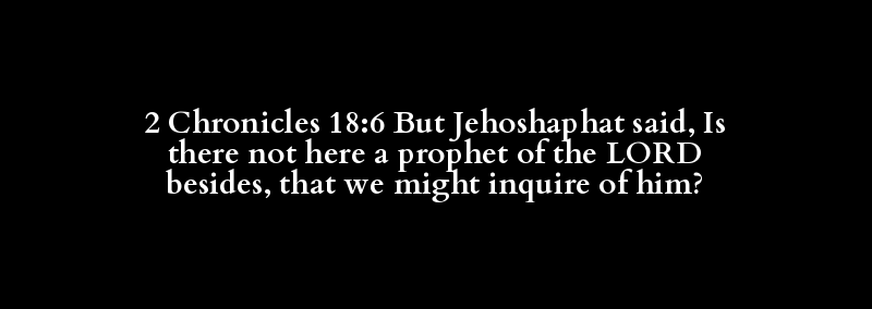 2 Chronicles 18:6 But Jehoshaphat said, Is there not here a prophet of the LORD besides, that we might inquire of him?