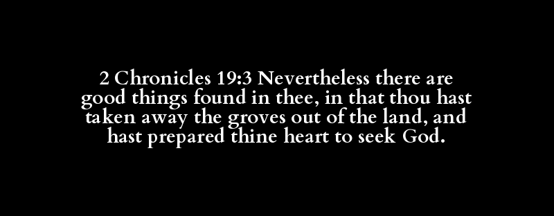 2 Chronicles 19:3 Nevertheless there are good things found in thee, in that thou hast taken away the groves out of the land, and hast prepared thine heart to seek God.