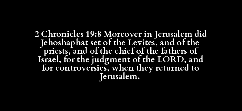 2 Chronicles 19:8 Moreover in Jerusalem did Jehoshaphat set of the Levites, and of the priests, and of the chief of the fathers of Israel, for the judgment of the LORD, and for controversies, when they returned to Jerusalem.