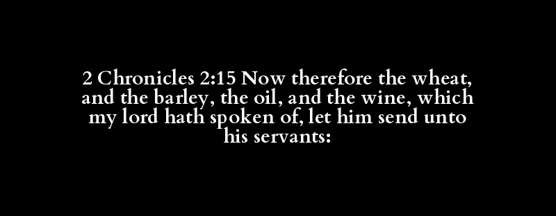 2 Chronicles 2:15 Now therefore the wheat, and the barley, the oil, and the wine, which my lord hath spoken of, let him send unto his servants: