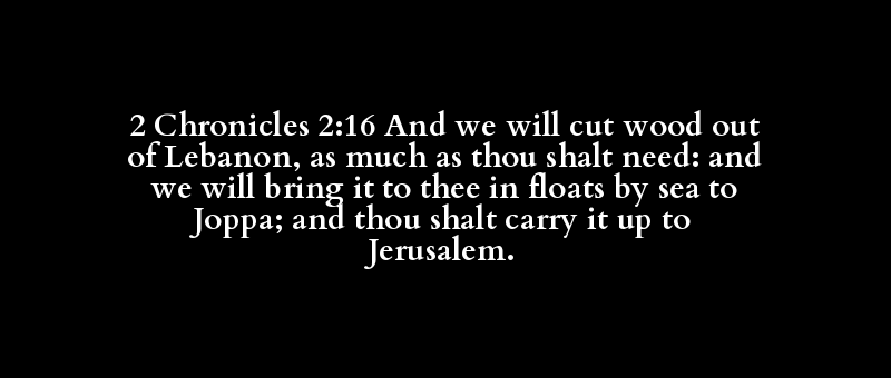 2 Chronicles 2:16 And we will cut wood out of Lebanon, as much as thou shalt need: and we will bring it to thee in floats by sea to Joppa; and thou shalt carry it up to Jerusalem.